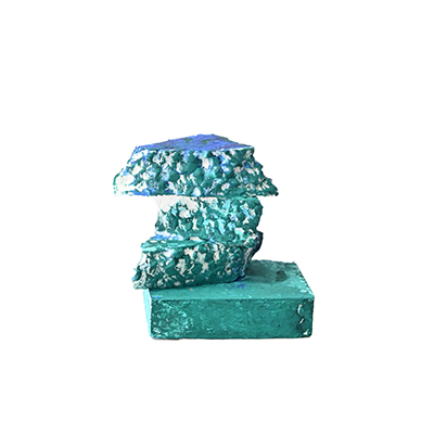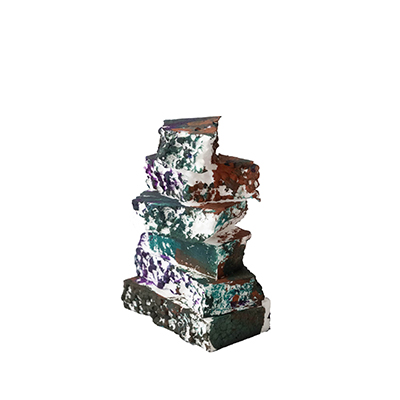 日山さんが制作した立体をもとにしています。あえて塗り残した発泡スチロールの白が、雪の結晶のように、見る人に強い印象を与えました。(ジャンウェイ)