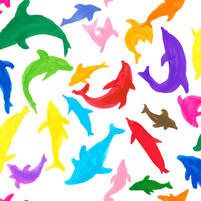 愛嬌たっぷりのカラフルなイルカが跳ね回るパターン