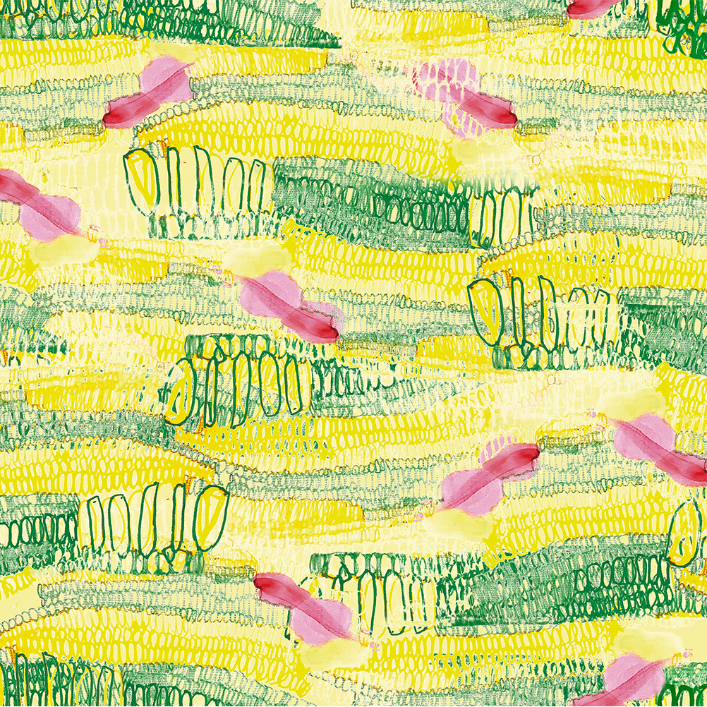 とうもろこしの粒達の中で金魚が泳ぐ