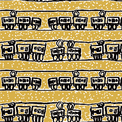 力強く、筆で描いた電車です。ものを見ながら絵を描く作者しか作れない作品ではないかと思います。背景は自由に変えるように設定しました。(虞 吉鴻)